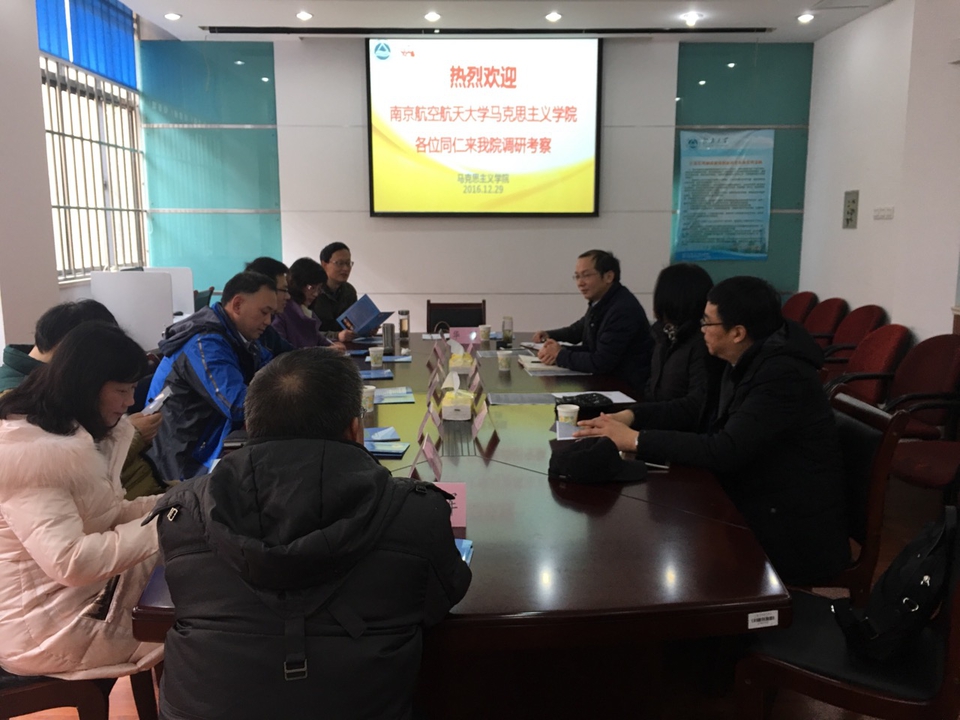应江南大学必威betway西汉姆的邀请,我院马克思主义基本原理概论教研室8位教师于2016年12月29日前往江南大学学习交流,得到了江南大学必威betway西汉姆张云霞院长、章兴鸣副院长、马克思主义基本原理概论教研室冯皓主任、毛泽东思想和中国特色社会主义理论体系概论教研室唐忠宗等老师的热情接待。双方详细介绍了学院学科建设与课程建设取得的成功经验,并围绕思政课改革创新和教学等进行了分享交流,气氛热烈友好,取得了良好的效果。
