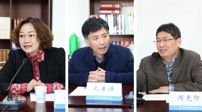 孔垂谦、周克印结合各自部门职责,分别就思想政治理论课的建设改革、精品课程申报、教师加强科研等问题提出建议和思考。