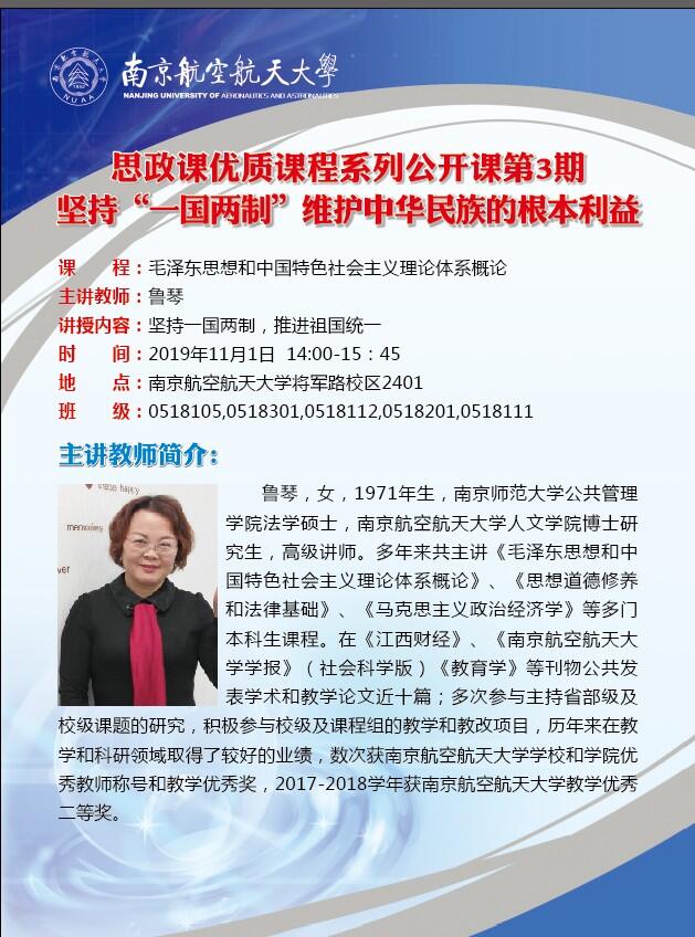 【思政课优质课程系列公开课第3期】鲁琴:坚持“一国两制”维护中华民族的根本利益