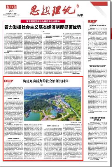 1月15日,《南京日报》“思想理论版”刊发我院鲁琴老师的文章《构建充满活力的社会治理共同体》,现将全文转发如下: