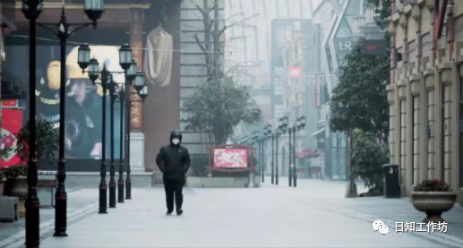不出两天,张灯结彩的闹市变成了空荡荡的大街,留下送货员独自奔忙,给这个城市一些零星运转的印记。