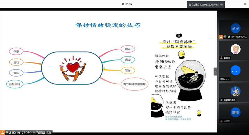 此次线上分享带给同学们科学的心理健康知识,并倡导心理保健意识,帮助同学们提高居家学习的效率缓解学业压力。学院将持续关注研究生的心理健康状况,针对压力来源和各种诉求开展积极有效的疏导工作,将学生的身心健康放在首位。