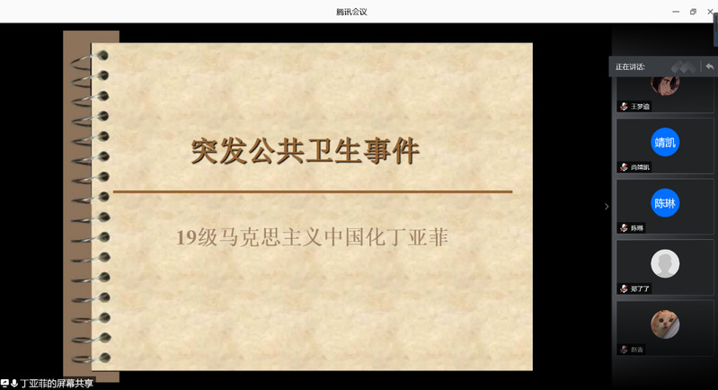 疫情仍未结束,防护不可轻忽。必威betway西汉姆研究生会近日在腾讯会议平台开展互学充电站第二期线上分享“突发公共卫生事件——常见的传染病及其预防”,马克思主义中国化专业硕士丁亚菲主讲。