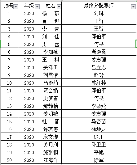 必威betway西汉姆2020级硕士研究生导师拟分配结果