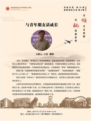 简介:王岩,哲学博士,教育部长江学者特聘教授,国家级教学名师。教育部高校“马克思主义理论类专业”“思想政治理论课”教指委委员;中国辩证唯物主义研究会、历史唯物主义学会常务理事;江苏省哲学学会副会长、江苏省高校“思政”课教指委副主任。