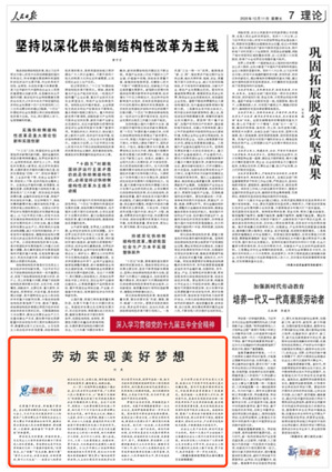 12月11日,《人民日报》第7版刊发我院副院长、博士生导师何畏教授的文章《劳动实现美好梦想》,现将全文转发如下: