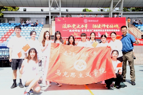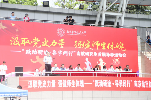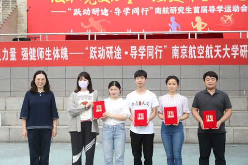 5月25日,以“学党史、悟精神、强体魄、促和谐”为目标,“跃动研途·导学同行”南航研究生首届导学运动会于将军路校区西操场举办。我院与艺术学院、外国语学院联合组队,院党委副书记、副院长陈红桂,青年教师胡媛媛与9名研究生代表学院参加,最终荣获最佳组织奖。