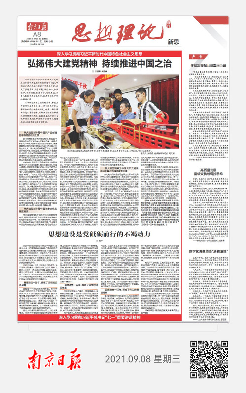 9月8日,《南京日报》“思想理论”版刊登我院正科级组织员万千老师的文章《思想建设是党砥砺前行的不竭动力》,现将全文转发如下: