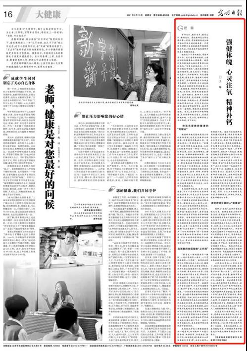 9月10日出版的《光明日报》刊登了我校党委常委、宣传部/教师工作部部长、我院研究生导师王晖的理论文章《强健体魄 心灵注氧 精神补钙》,现将全文转发如下: