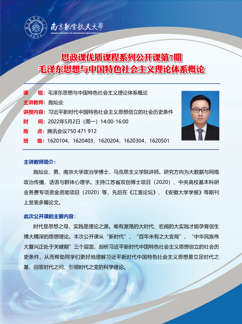 “思政课优质课程系列公开课”第7期:毛泽东思想与中国特色社会主义理论体系概论