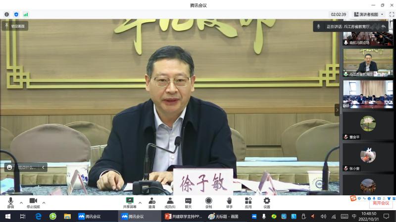 为深入学习贯彻党的二十大精神,10月31日,我院思想道德与法治教研室党支部与省教育厅社政处党支部,以视频连线的方式开展联学共建活动。省委教育工委副书记徐子敏出席联学共建活动。省教育厅机关党委副书记刘海宁、社政处处长赵玉蓉,院党委书记徐川、院长王智及双方党员参加活动。赵玉蓉主持会议。