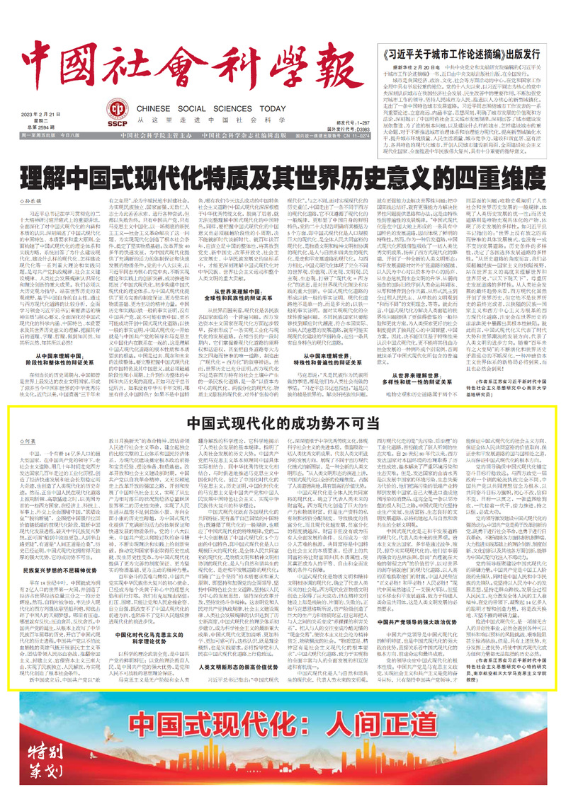 2月21日,《中国社会报》第A01版刊发了我院何畏教授的理论文章《中国式现代化的成功势不可当》,现将全文转发如下: