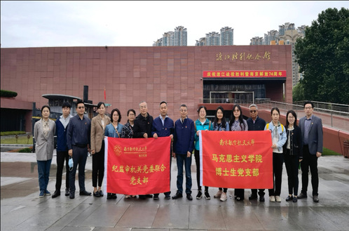 为深入开展学习贯彻习近平新时代中国特色社会主义思想主题教育,坚持不懈用习近平新时代中国特色社会主义思想凝心聚魂,5月24日,我院博士生党支部与校纪监审机关党委联合党支部赴渡江胜利纪念馆开展“学习渡江精神,凝聚奋进力量”“三个一”联系活动。