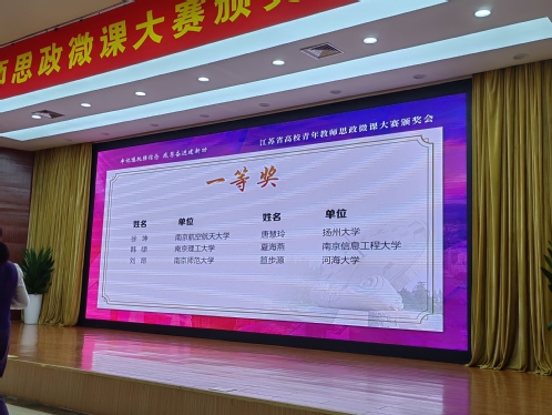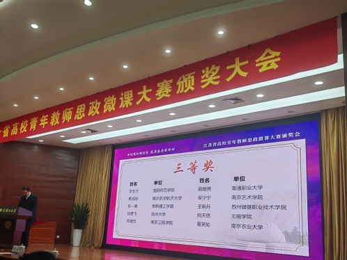 日前,江苏省教育厅公布了全省高校青年教师思政微课大赛的评选结果,我院喜获佳绩,获得一等奖1项,三等奖1项。其中,徐坤老师获一等奖、惠成刚老师获三等奖。
