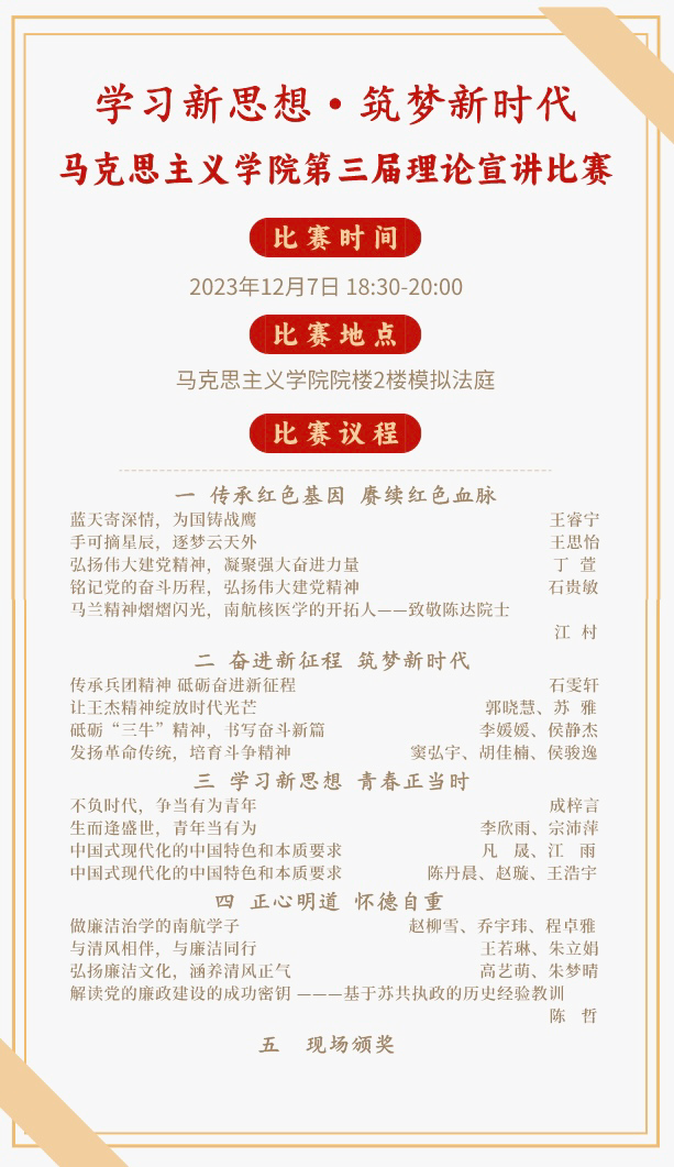 为深入学习贯彻习近平新时代中国特色社会主义思想,引导我院学子在学思践悟中坚定理想信念,12月7日晚,由学院党委主办,学院硕士研究生党支部和研究生会承办的“学习新思想,筑梦新时代”必威betway西汉姆第三届理论宣讲比赛在学院楼模拟法庭成功举办。