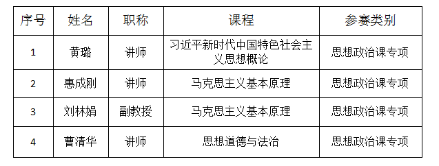 根据学校《关于举办2024年高水平教师教学竞赛校赛暨省赛选拔赛的通知》的要求,经个人申报、专家评审和学院审核,学院拟推荐4名教师参加学校青年教师教学技能大赛,现予以公示。