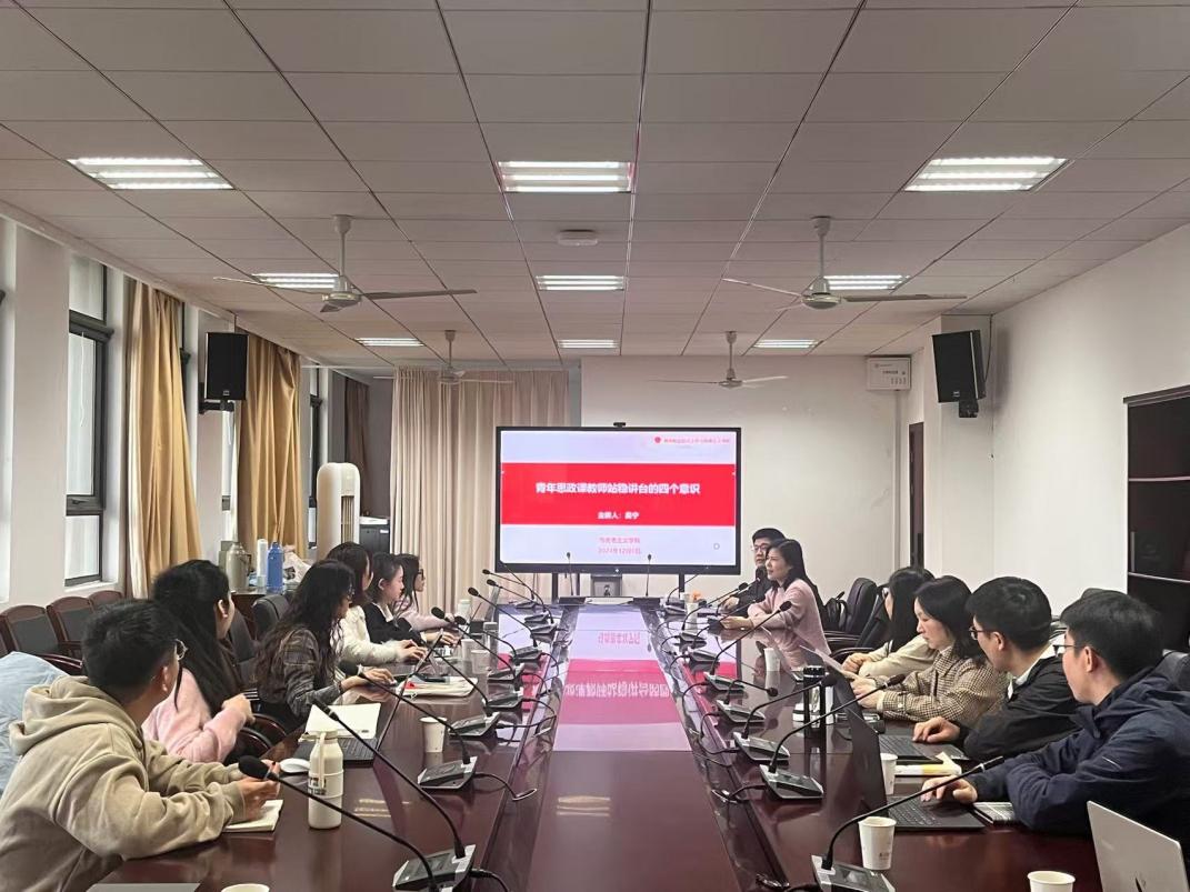 学院4名备战青教赛的教师现场说课,吴宁逐一点评,并从教案设计、案例引用等方面提出指导意见。作为参赛经验丰富的思政课教师,吴宁表示,青年教师要以赛促学,以赛促教,持续提升教学能力水平,站稳思政讲台。