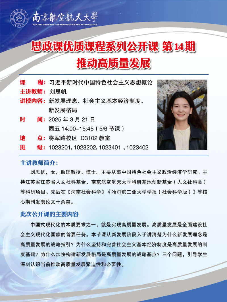 “思政课优质课程系列公开课”第14期:推动高质量发展