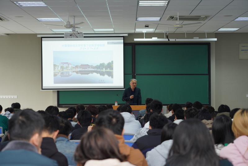 王奇志以“从中国博物馆发展看南京博物院”为题,回溯南博的历史。他首先讲授南博的前身——国立中央博物院的创办历程和宗旨。在全民族抗战的战火纷飞中,中央博物院辗转万里保护国宝西迁,创造了中国文化史上堪称奇迹的“文物长征”。他指出,新中国成立后,南博的定位从“东南地区物质文化史博物馆”到“江苏历史艺术性博物馆”,一座中国的、江苏的文化艺术宝库初具规模。改革开放以来,南博与时代同频共振,保护文化遗产、探索地域文明、创新服务理念,在改革春风中阔步前进。走进新时代,南博坚持把保护和传承人类文明、发挥连接过去、现在、未来的桥梁作用作为自己的职责使命。南博人始终坚持正确政治方向,坚定文化自信,深化学术研究,创新展览展示,推动文物活化利用,推进文明交流互鉴,守护好、传承好、展示好中华文明优秀成果。他强调,南京博物院的发展历程是一组筚路蓝缕、上下求索、弦歌不绝的长镜头,在与国家发展和民族复兴同向同行的历史画卷中熠熠生辉。在中国特色社会主义新时代,南博完成改扩建工程,乘势而上、焕然一新,形成“一院六馆”“一院六所”全新格局,成为一座集保护、研究、教育、服务于一体的大型历史艺术综合性博物馆。