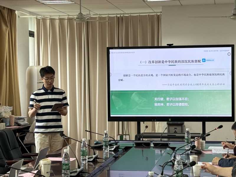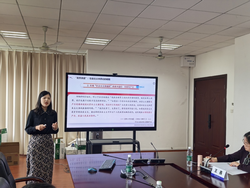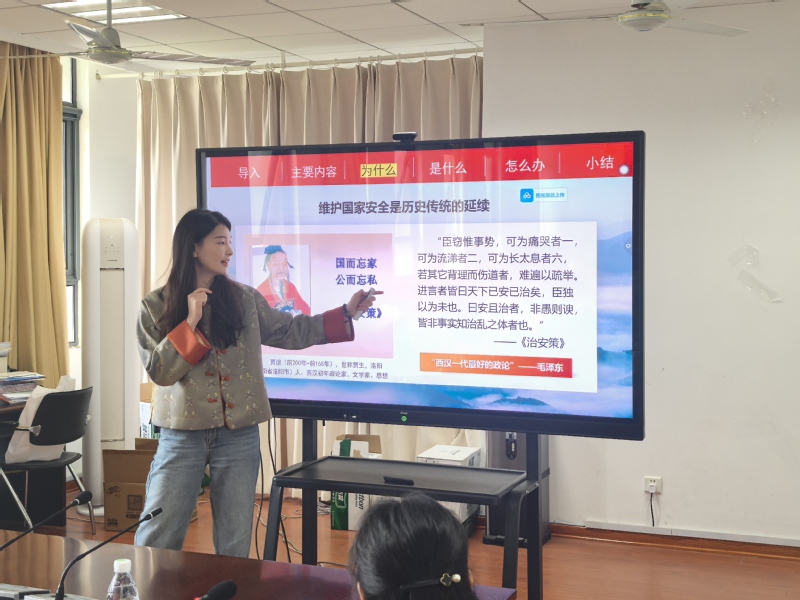 本次比赛报名踊跃,现场共有9位教师参赛。他们围绕“总体国家安全观”、“构建新发展格局”、“人生真谛”等选题进行展示。六位评委从教学内容、教学方法、教学效果、特色创新、参赛技巧等方面对每位的微课教学进行全面点评,并提出针对性意见和建议。