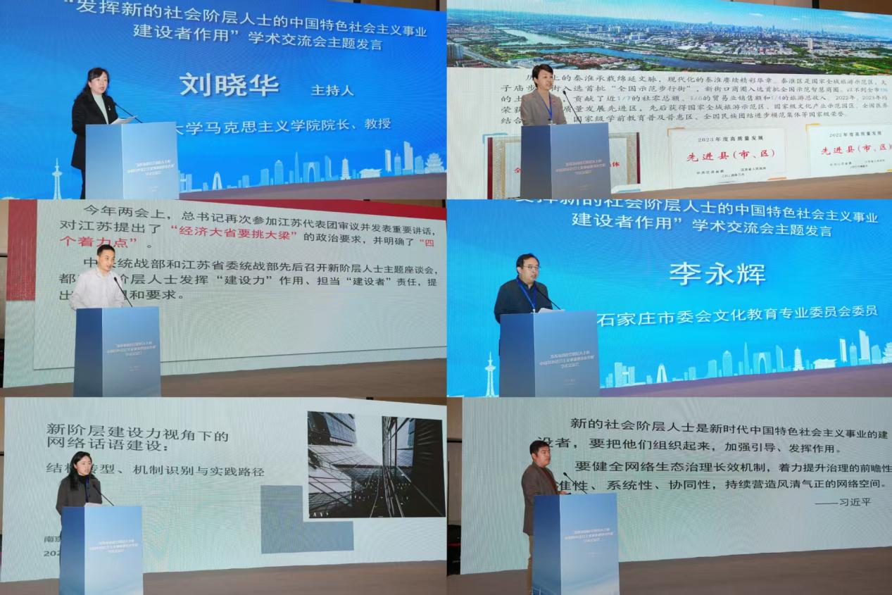 主题发言的第二个阶段由常州大学必威betway西汉姆院长、教授刘晓华主持。南京市秦淮区委统战部常务副部长奚巍蔚,无锡市委统战部办公室副主任魏龙,九三学社石家庄市委会文化教育专业委员会委员李永辉,南京理工大学设计艺术与传媒学院讲师唐希璐,常州大学瞿秋白政府管理学院教授丛玉飞分别作主题为《团结引导新的社会阶层人士发挥建设力作用的实践创新研究——以秦淮区为例》《新的社会阶层人士发挥建设力作用的方法路径研究——以无锡市为例》《新时代党的统一战线理论下新阶层建设力的高质量发展研究》《数字化转型背景下新阶层“建设力”生成机制与统战实践路径研究》《新社会阶层参与网络社会治理的创新实践——以C市辟谣联盟为例》的报告。